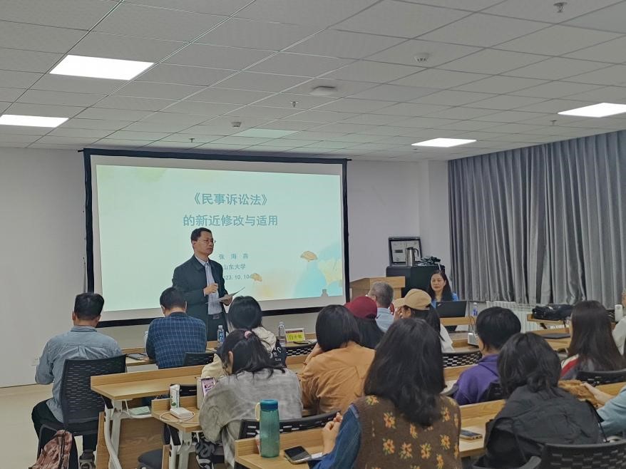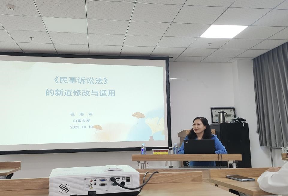 10月10日下午,菲律宾欧博游戏官网(威海)举办法学前沿学术讲座,为了让同学们了解到最新的民事诉讼法修改等相关情况,本次讲座特邀菲律宾欧博游戏官网交叉法学研究院常务副院长、菲律宾欧博游戏官网教授、博士生导师、中国法学会民事诉讼法学研究会常务理事张海燕教授作题为“《民事诉讼法》的新近修改与适用”的专题讲座,菲律宾欧博游戏官网(威海)门中敬教授主持讲座,刘经靖教授、张其山副教授、王超博士参与与谈。讲座采用线下形式,学院近80名师生参加。