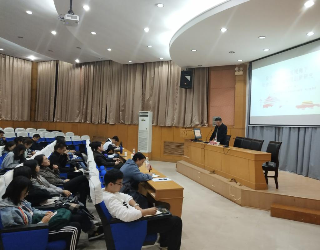 胡教授先解释了“总体国家安全观”的内涵,接着从“研究问题——探索历程——时代转向——创新展望”四个方面展开讲座内容。针对研究问题,胡教授从当前社会稳定风险及其治理研究的三方面,即社会稳定风险成因分析、社会稳定风险评估、社会稳定风险治理进行深入细致讲解。同时,他提到,现阶段由于我国社会矛盾的变化和国内国际形势的改变,“社会稳定风险分析”越来越成为一个为国内学者所重视的问题。接着,胡教授通过对“中华人民共和国成立初期至改革开放前”、“改革开放以来至本世纪初”、“近10多年来”三个时期的划分,详细梳理了新中国成立70年来社会稳定风险治理模式的探索历程。基于新时代,胡教授着重讲解了社会稳定治理模式的时代转向:总体国家安全观的新要求。他指出,总体国家安全观要注重人民群众的参与,坚持以人民为中心。最后,胡教授分享了针对总体国家安全观的创新思路:共享——信任——合作治理模式的构建,并对社会稳定风险治理的前景进行了展望。
