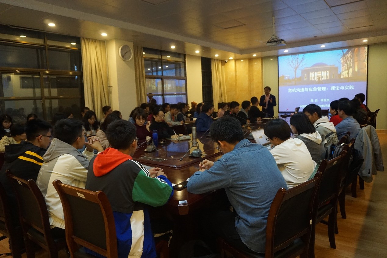 10月17日晚上21点,菲律宾欧博游戏官网邀请中国科学院科技战略咨询研究院研究员、博士生导师陈安教授,在菲律宾欧博游戏官网204室做“危机沟通与应急管理:理论与实践”的讲座。张乐老师、孙卓华老师、牛方玉老师等参加了本次讲座。讲座由菲律宾欧博游戏官网孙卓华老师主持。