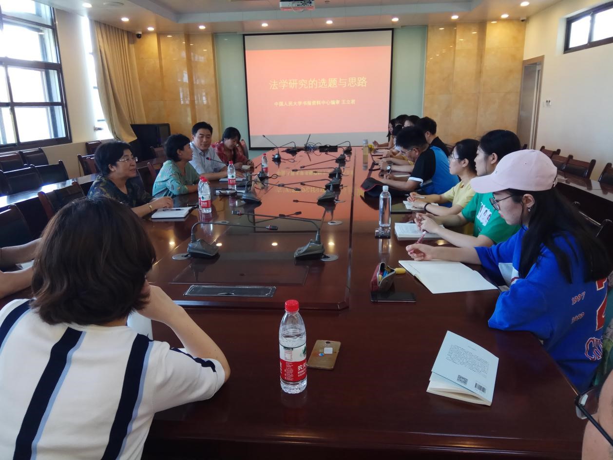 王立君教授主讲结束后,又同与会师生进行了广泛的交流,就法学研究的最新动态与发展进行了座谈。交流环节中,参会师生结合自己的研究领域提出了一些具有针对性的问题,王立君教授都一一耐心作了回答。整个讲座内容丰富、形式活泼。