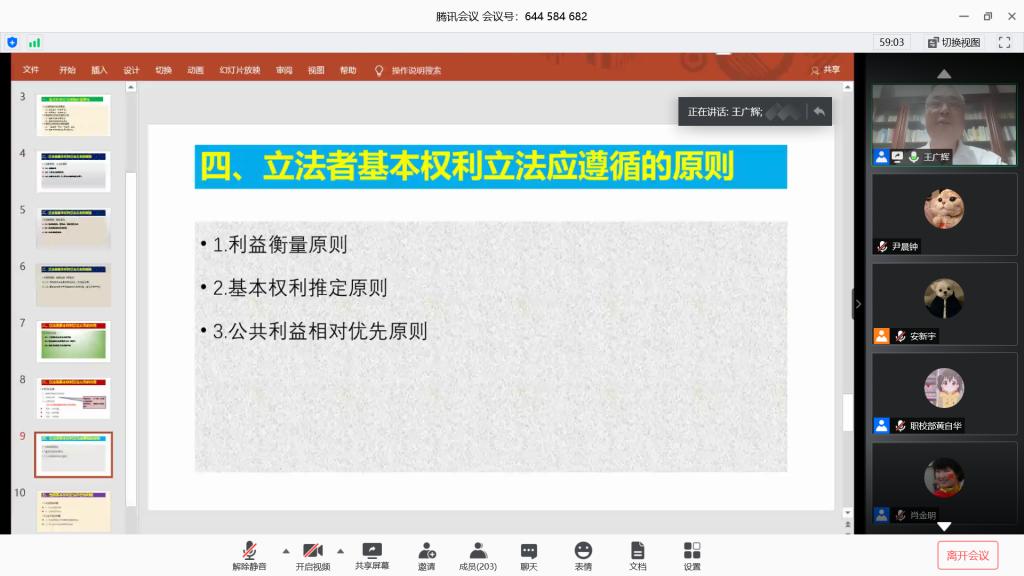 5月11日晚,我国公法学界知名学者、中南财经政法大学教授、博士生导师王广辉教授受邀举行题为“法治国家建设中的基本权利保障”的学术讲座。讲座于腾讯会议线上召开,菲律宾欧博游戏官网院长肖金明担任主持人,门中敬教授等教师代表与学生共计200余人参加本次讲座。