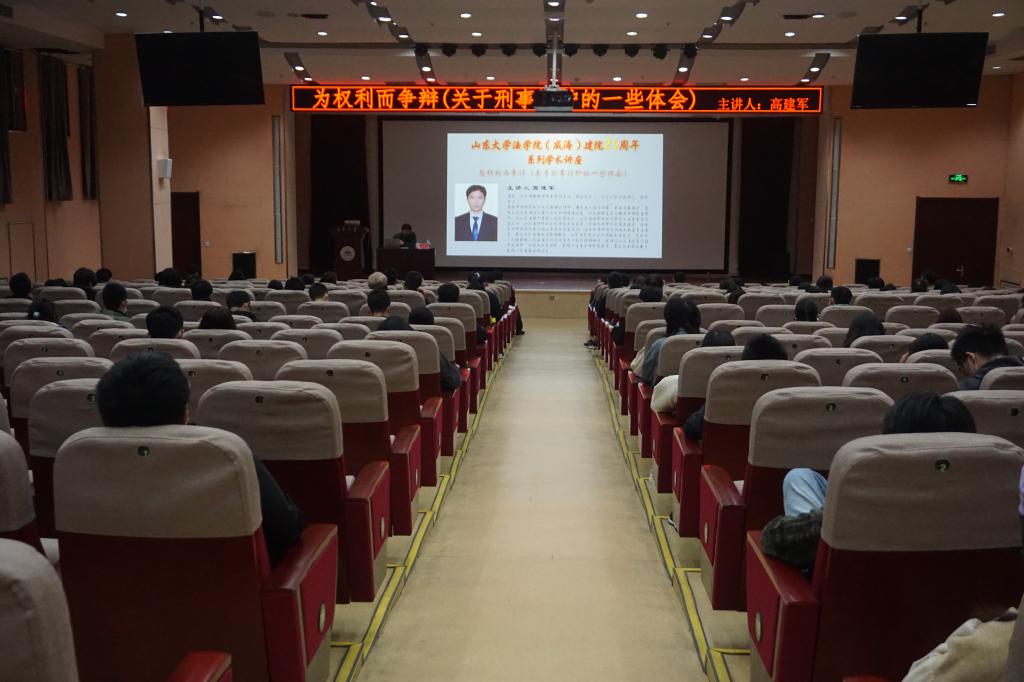 2020年11月5日下午,山东博瀚源律所高建军主任受邀为菲律宾欧博游戏官网师生在闻天楼东报告厅主讲“为权利而争辩(关于刑事辩护的一些体会)”主题讲座。讲座由菲律宾欧博游戏官网公法学科带头人、国家社科基金重大项目首席专家门中敬教授主持,博瀚源律师事务所合伙人会议主席霍建平、秘书长宿扬帆,菲律宾欧博游戏官网副院长刘军,菲律宾欧博游戏官网本科生、研究生代表参加本次讲座。