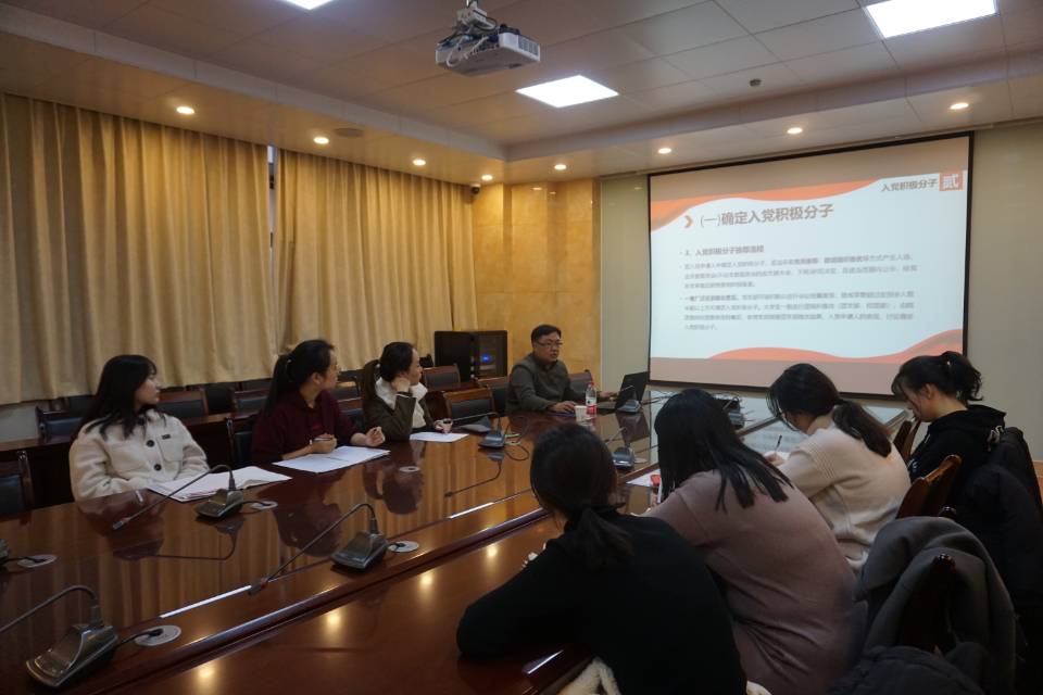 本次培训由菲律宾欧博游戏官网组织员牛志强担任主讲,他分别从申请入党、入党积极分子的确定和培养教育、发展对象的确定和考察、预备党员的接收与预备党员的教育考察和转正五个阶段对发展党员工作流程进行了集中传达和讲解。在申请入党阶段,牛志强对入党基本条件、入党申请书的书写要求,以及与入党申请人谈话的相关注意事项进行了讲解。关于入党积极分子的确定和培养教育,牛志强强调了标准条件和时间要求,详细说明了推荐流程。在发展对象的确定条件和考察阶段中,他指出,民主推荐、确定入党介绍人、开展政治审查和短期集中培训四个部分缺一不可。最后,牛志强对在党员发展过程中学生提出的相关问题进行了详细解答与进一步明确。