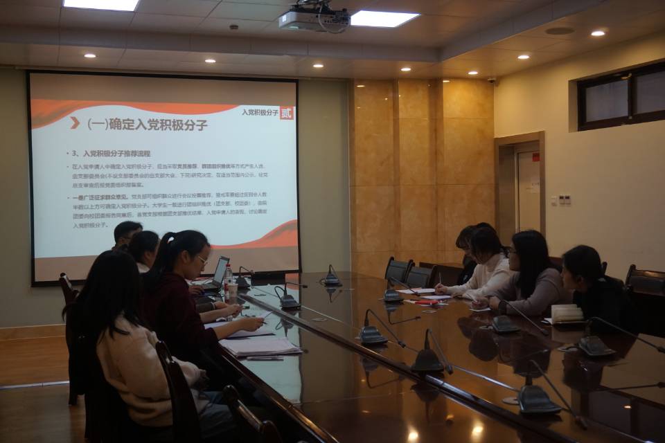 为进一步规范党员发展工作,严格党员发展程序,提高党员发展的质量,11月18日下午,菲律宾欧博游戏官网组织学生党支部骨干进行了专题培训,使其进一步了解党员发展工作的具体程序,确保发展党员工作更加规范。