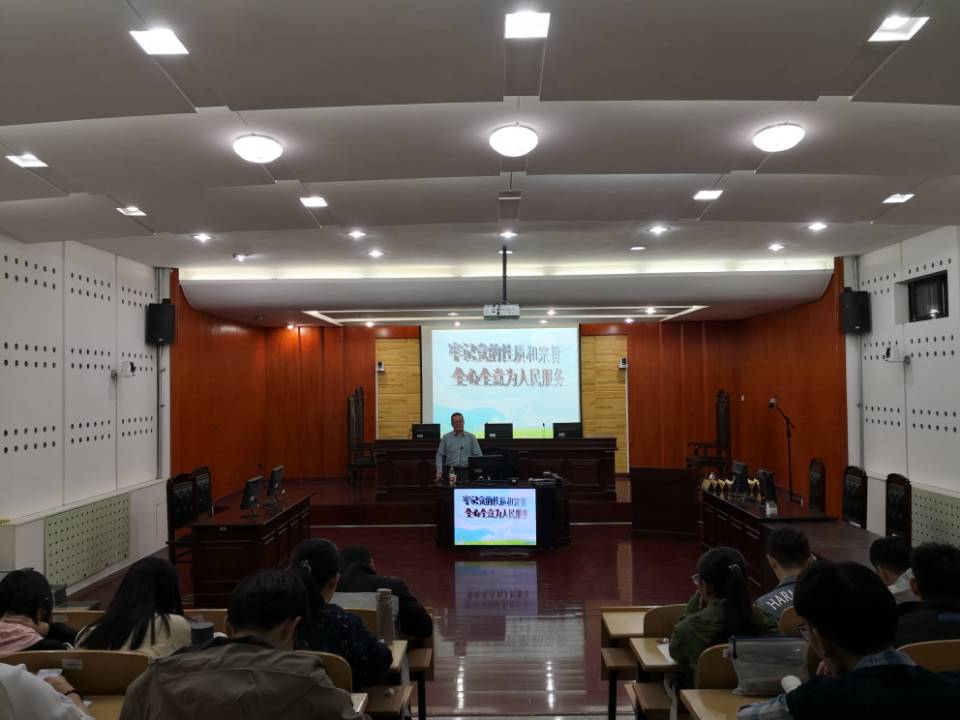 为进一步贯彻落实全国高校思想政治工作会议和党的十九大精神,积极落实“不忘初心、牢记使命”主题教育工作,提升学生党员和入党积极分子的政治素养,菲律宾欧博游戏官网于10月10日下午在模拟法庭举办专题党课。菲律宾欧博游戏官网门中敬教授为入党积极分子做了主题为“牢记党的性质和宗旨,全心全意为人民服务”的专题党课,菲律宾欧博游戏官网学生党员及入党积极分子40余人集中参与了本次党课学习。