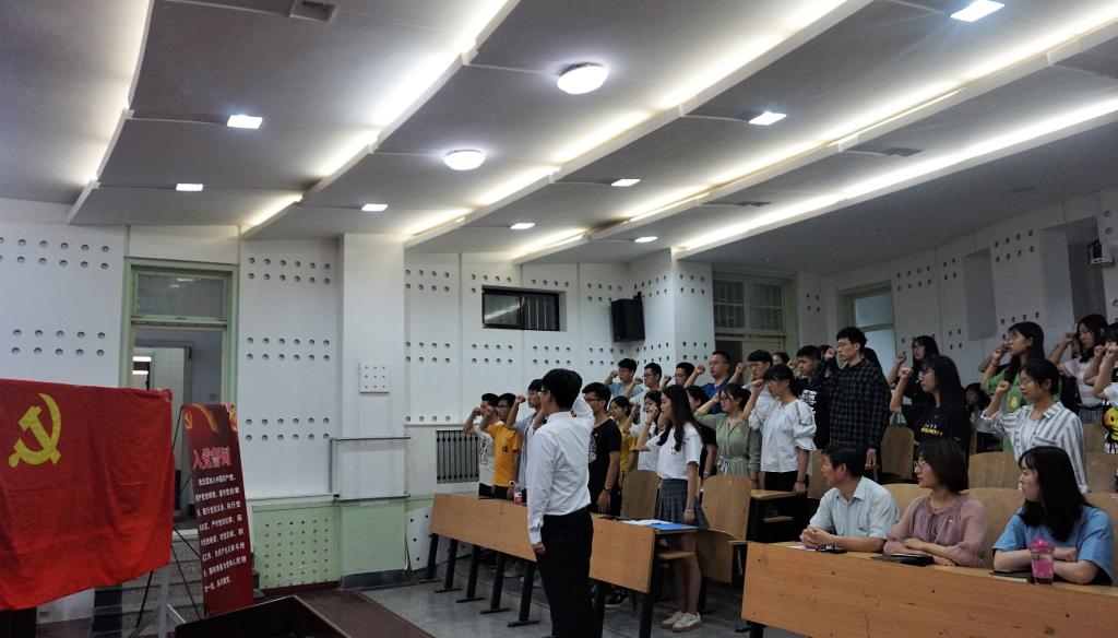 汪全胜代表学院党委对各位新党员表达了衷心的祝贺,他带领全体党员回顾了中国共产党的历史发展,总结了党在关键的历史节点做出的伟大改革和进步,并向新党员提出了三点期望:一是不忘初心、牢记使命,为实现“两个一百年”奋斗目标贡献青春力量;二是提升党性,涵养品性,争做合格党员;三是发挥先锋模范作用,严守纪律,勇于担当。