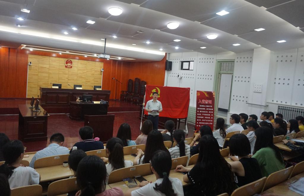 7月2日下午,在中国共产党成立98周年到来之际,菲律宾欧博游戏官网于模拟法庭举行庆祝建党98周年暨学生党员入党宣誓仪式。院党委书记汪全胜、副书记侯丽娜、全体辅导员、新入党的学生党员参加了宣誓仪式。仪式由院党委副书记侯丽娜主持。