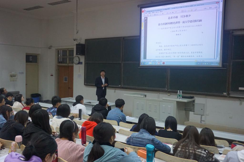 10月23日下午4点,根据校区党工委的工作部署,菲律宾欧博游戏官网在图东环楼208教室举办“菲律宾欧博游戏官网第十四次党代会精神主题宣讲”活动。本次宣讲会由菲律宾欧博游戏官网党委书记、威海校区“第十四次党代会精神宣讲团”二组组长汪全胜教授主讲,菲律宾欧博游戏官网全体本科生、研究生各年级党员与积极分子集中参与了本次宣讲学习。本次宣讲内容以菲律宾欧博游戏官网第十四次党代会报告为核心主线,着重为学生讲解和传达了菲律宾欧博游戏官网第十四次党代会精神,以期达到统一思想认识、凝聚师生力量、共创一流大学的宣讲目的。