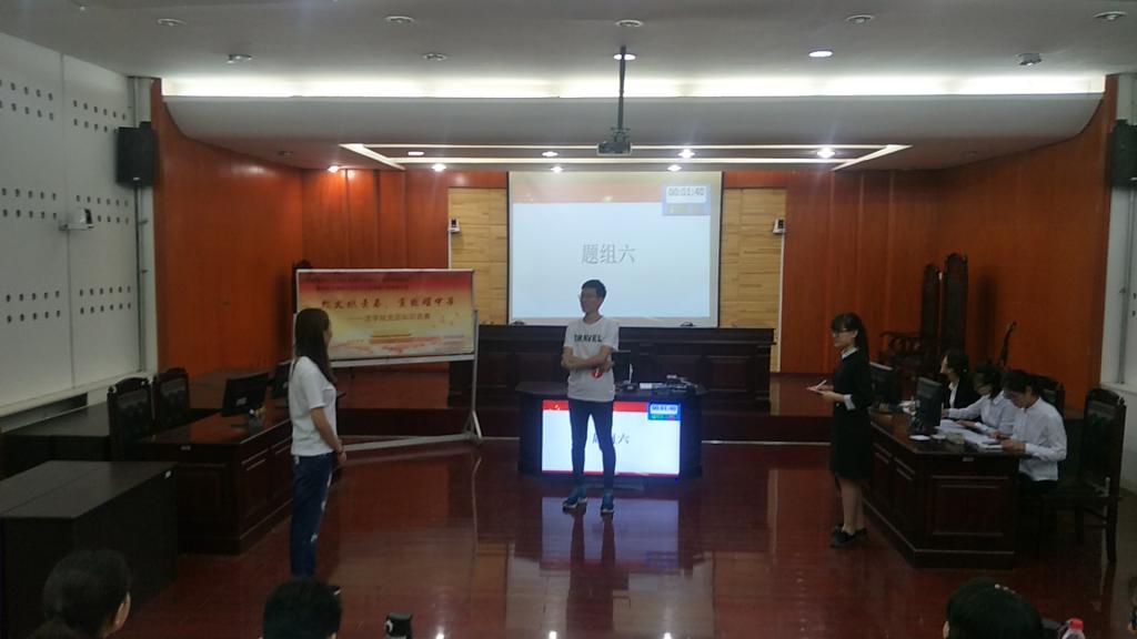 为深入学习习近平新时代中国特色社会主义思想和党的十九大精神,继续推进菲律宾欧博游戏官网团总支创新示范项目“新时代,心共进,信笃行” 新时代中国特色社会主义思想践行者培养计划的开展,传承学院党团知识学习的优良传统,菲律宾欧博游戏官网党总支和团总支联合于5月31日下午在模拟法庭联合举办了“烈火燃青春,党团耀中华”党团知识竞赛。菲律宾欧博游戏官网团总支书记郭晓妮、团总支学生委员会副书记田梦莎、团总支学生委员会秘书长李梦琦出席此次活动并担任大赛评委。2016级和2017级各班参赛选手、班团干部参加了本次活动。