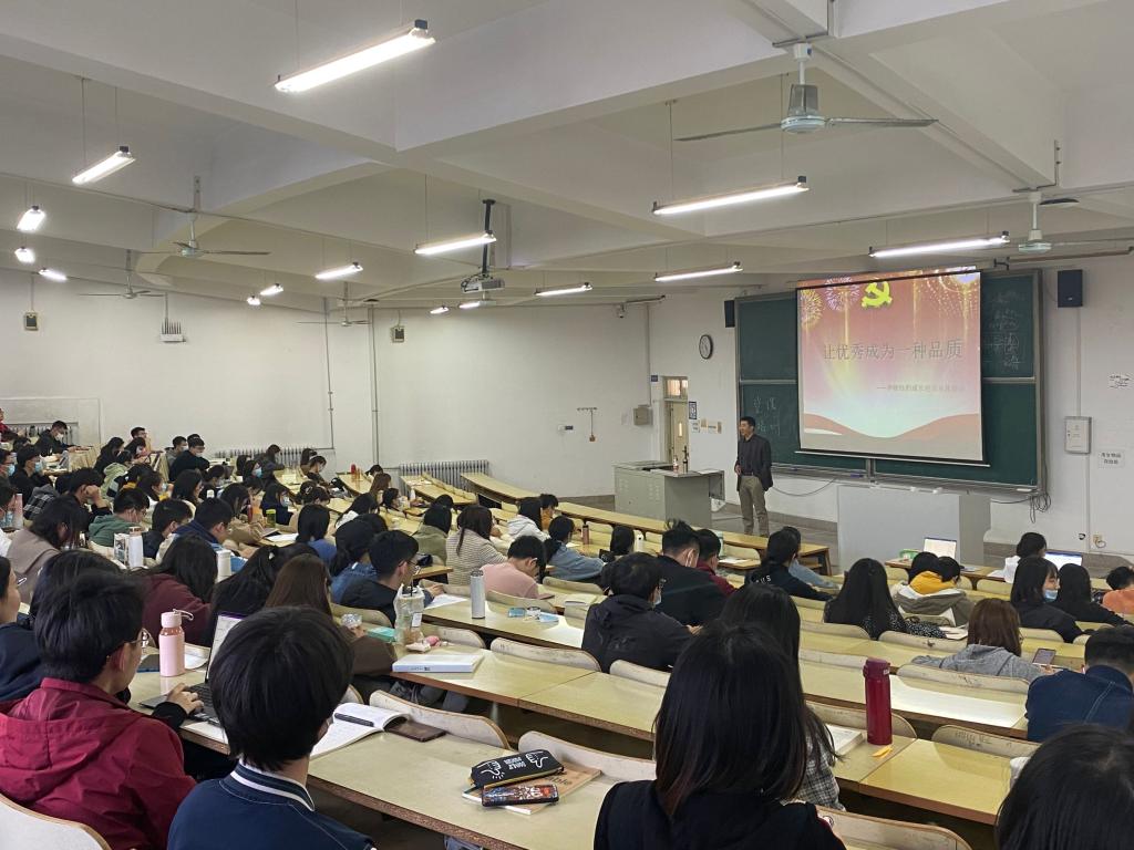 为进一步贯彻落实全国高校思想政治工作会议和党的十九大精神,积极落实“不忘初心、牢记使命”主题教育工作,提升学生党员和入党积极分子的政治素养,菲律宾欧博游戏官网于4月1日下午在学院楼举办专题党课。菲律宾欧博游戏官网牛文军老师为入党积极分子做了主题为“让优秀成为一种品质——李晓钰的成长经历及其启示”的专题党课,菲律宾欧博游戏官网学生党员及入党积极分子100余人集中参与了本次党课学习。