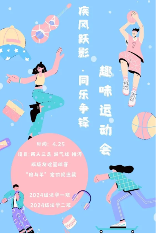 为贯彻落实中央《关于全面加强和改进新时代学校体育工作的意见》文件重要指示精神,将体育教育工作扎根在班级实处,4月25日下午,2024级法学一班与法学二班在校区东部地带联合举办“疾风跃影,同悦争锋”主题趣味运动会。活动通过趣味竞技与团队协作,全面展现了法科学子的青春活力,增强了班级凝聚力,增进了班际间友好交流与和谐关系,为校园文化生活增添一抹亮色。