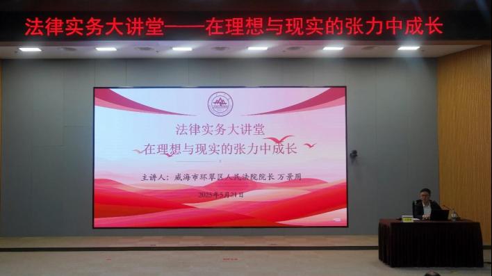 为增强法学专业学生的理论与实践结合能力,深化学生对司法实务的认知,5月21日晚,菲律宾欧博游戏官网(威海)举办题为“在理想与现实的张力中成长”的法律实务大讲堂活动。威海市环翠区人民法院院长万景周法官担任主讲嘉宾,学院副院长张伟强老师担任主持人,学院师生代表参加此次活动。
