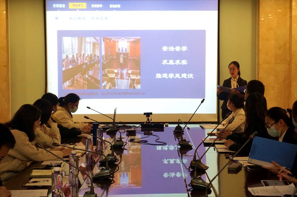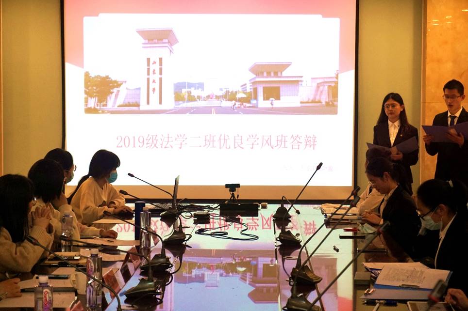 本次答辩会共分为候选校级先进班级答辩、候选校级优良学风班答辩和总结点评三个环节,主要围绕各班级2020-2021学年取得的成就与班级未来规划展开。闫玥向同学们介绍了先进班集体和优良学风班的申报和评选标准细则。2020级新闻法学班、2019级法学与英语双学位班和2019级党内法规与监察法学班依次进行了候选校级先进班集体答辩,从思想建设、专业学习和实践发展等多方面介绍了班级所取得的成就。2020级党内法规与监察法学班、2020级新闻法学班、2019级法学二班和2019级法学与英语双学位班依次进行了候选校级优良学风班集体答辩,围绕学习方式、学习氛围和学习成果等方面展开答辩,展现了参选班级特色鲜明、笃志博学的优良学风、班风。菲律宾欧博游戏官网党委副书记侯丽娜进行了总结点评。她指出,良好的班风、学风是促进学生全面成长成才的重要条件,班级成员理应凝聚合力,为班级建设出谋划策,同时班级之间也应发挥传、帮、带作用,助力学院学风建设的进一步发展。