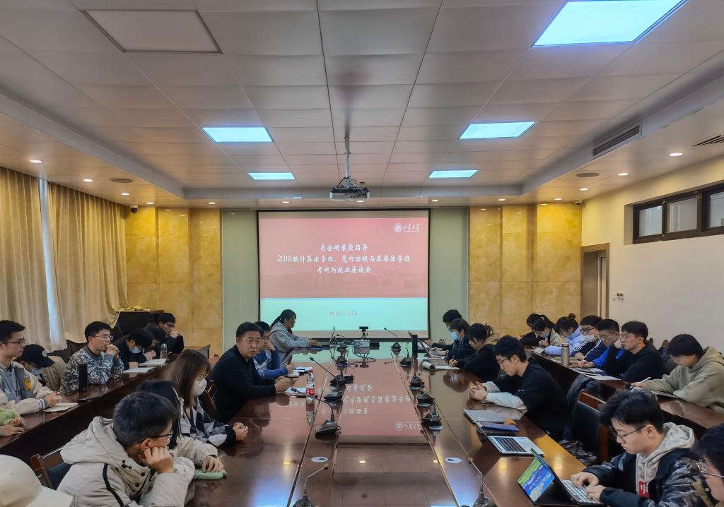 汪全胜书记与2018级法学一班的全体同学进行亲切交流,他强调,在就业方面,同学们要重视个人简历在考研和就业中的突出作用,鼓励班委带头在班级介绍简历制作方法、分享简历模板,为应聘和面试打下良好基础。肖金明院长表达了对计算法学、党内法规与监察法学特色班同学的殷切期望,他鼓励同学们树立信心,坚定理想信念,向着成为新时代法治人才而不懈奋斗。针对2018级行政管理班当前的考研和就业形势,姜世波副院长对同学们提出了建议:夯实基础,吃透课本,把专业素养转化为应试技巧,全力以赴争取优异成绩。门中敬副院长建议法学二班的同学们多尝试,放松考试心态,就业准备也需要放松心态,同时要明确目标,不要瞻前顾后,结合多方面的资源,做到全面辩证思考自己的人生走向。侯丽娜书记强调,对于2018级社会工作班同学们在考研中过程的学习问题,提醒大家要特别注意学的过程中要讲究学习方法,勤于思考,灵活运用。关于就业方面,她希望学生们依旧多多尝试,但不是不考虑后果的尝试,而是要留有后路的、做好后续准备的尝试。