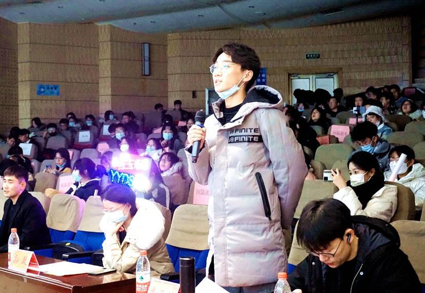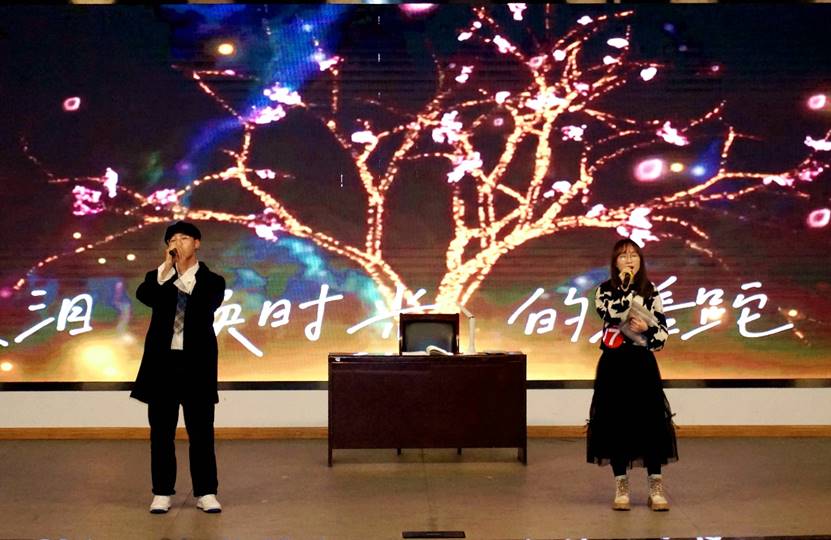 本次比赛共分为三个环节,分别是晋级赛环节、帮唱环节以及歌王争霸环节。在晋级赛环节“声存计划”中,十组选手依次上台演唱。经过激烈角逐,宋倩文、杨玉涵、盈乐组合、杨开新、张博、张磊六组选手晋级。第一环节结束后,主持人随机抽取了六位幸运观众上台进行互动小游戏,充分调动了同学们的积极性。
