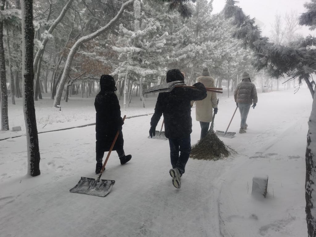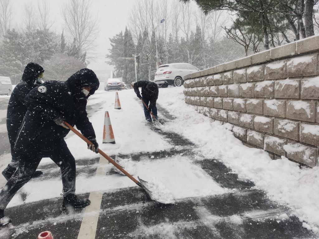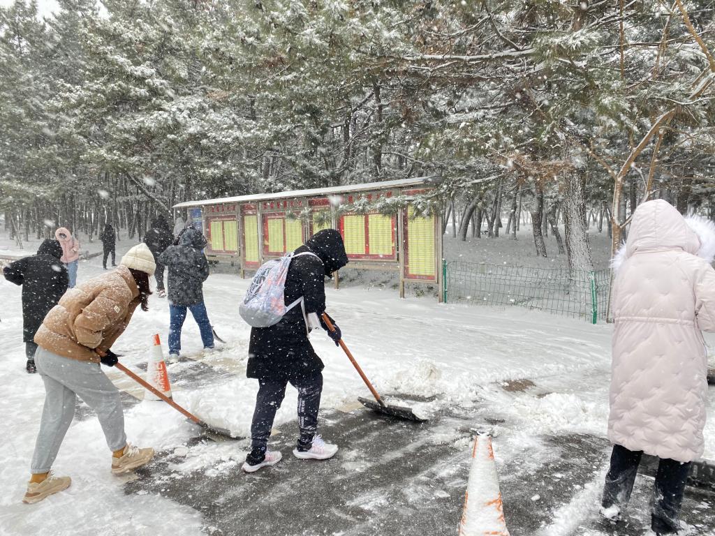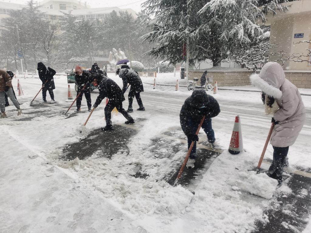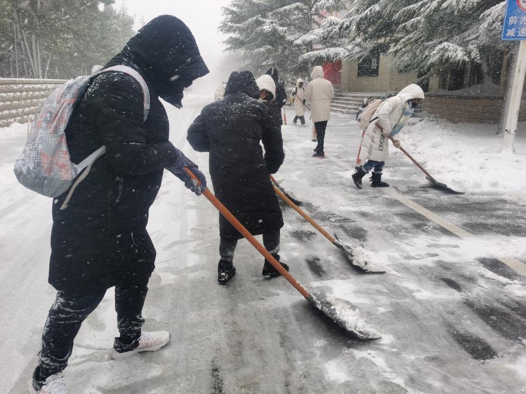 12月17日,受强冷空气影响,威海市出现大风降温降雪天气,校园内道路积雪结冰严重。菲律宾欧博游戏官网第一时间发布《菲律宾欧博游戏官网关于动员广大青年积极参加校园扫雪除冰的倡议》,组织开展校园扫雪除冰劳动教育活动。