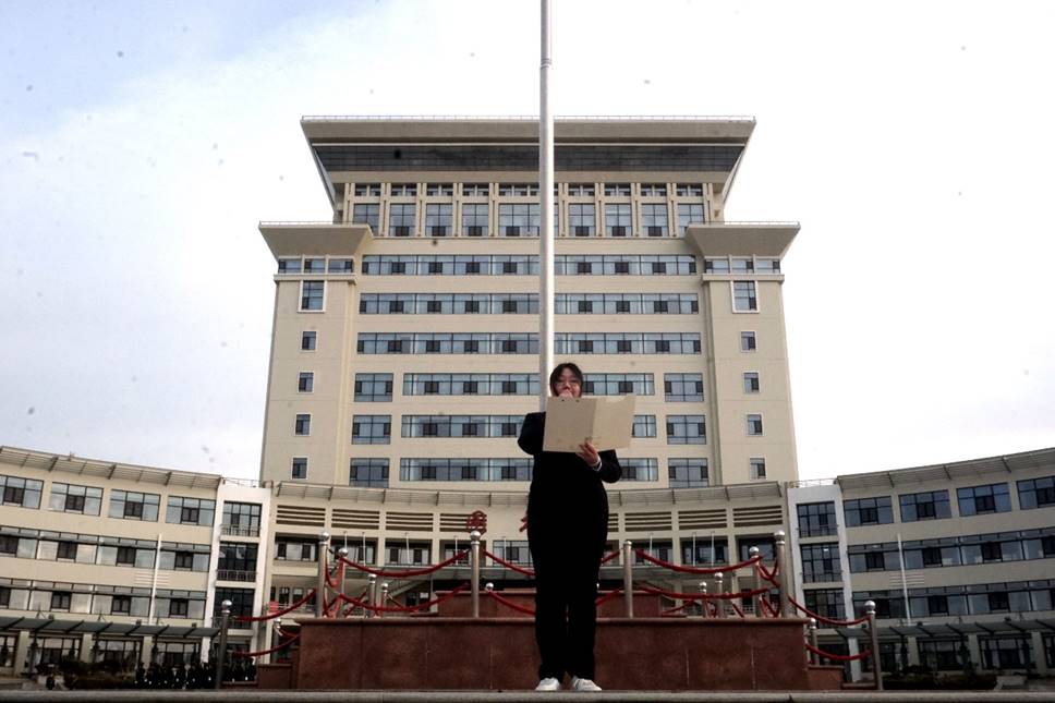 在庄严的国歌声中,五星红旗冉冉升起,全体师生行注目礼。2021级计算法学班陈丹妮主持此次升国旗主题团日活动。她在发言中提到,百年征程中,共青团始终坚定不移跟党走,书写了中国青年运动的华章。山大学子理应建功新时代,以实际行动迎接共青团的百年诞辰。2020级党内法规与监察法学班张子方在迎风飘扬的五星红旗下进行了以“庆祝建团百年,展现青春担当”为主题的演讲。她简述了共青团的发展历史,回顾了百年历程中一代代共青团员不怕困难,不畏艰险,在时代浪潮中不负历史之所托的青年风采,并号召法苑学子在学习科学文化知识的同时,认清自己的历史使命,继承无数团员革命先烈的遗志,以不畏艰险、艰苦奋斗的品格,为实现中华民族伟大复兴的中国梦作出新的贡献。仪式最后,2020级党内法规与监察法学班班长杨增昊作为领誓人,带领全体学生重温入团誓词,表达了作为新时代青年砥砺奋进的坚定决心。