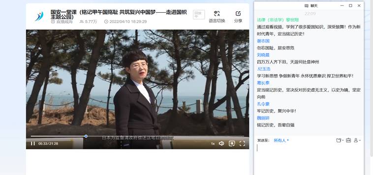 本次组织观看“国安一堂课”取得良好效果,同学们纷纷表示愿和平永存,而国耻不忘。国家安全的根基在人民,力量在人民。面对当今百年未有之大变局,身为当代青年的我们要牢记习总书记的教诲,要树立远大理想、要热爱伟大祖国、要担当时代责任、要勇于砥砺奋斗、要练就过硬本领、要锤炼品德修为。为实现中华民族的伟大复兴奋斗终生!