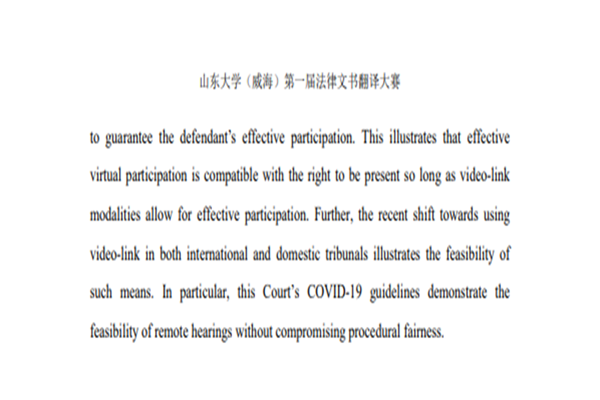 为强化同学们对法律英语的实际应用,让同学们进一步感受国际法的魅力,2019级法学+英语双学位班作组织举办了第一届“法律文书翻译大赛”。本次大赛面向全校学生收集指定法律文本的翻译文件,由学院国际法教学团队以及本班具有丰富国际法模拟法庭参赛经历的同学担任评审裁判。
