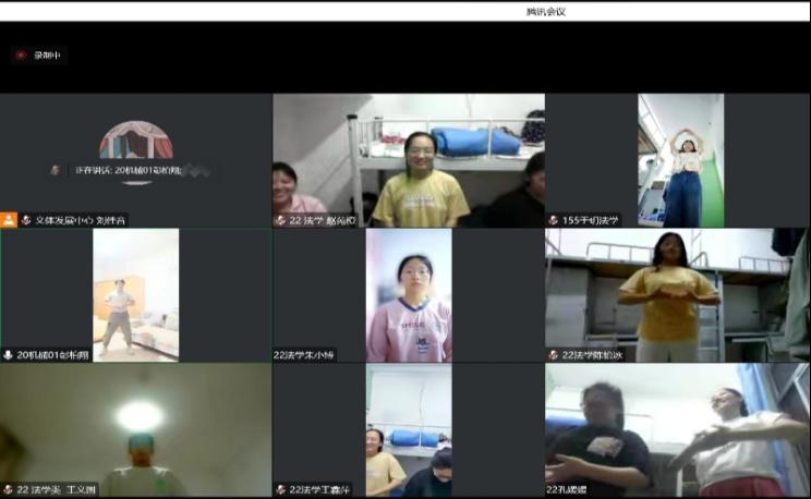 本次“八段锦”直播观看学习活动通过腾讯会议进行,教学时间为期三天。活动伊始,彭柏翔为同学们简要介绍了“八段锦”的起源与功法特点。随后,他强调“八段锦”具有松静自然、准确灵活、练养相兼和循序渐进四大习练要领,希望同学们在学习时注意观察并加以体会。在介绍完“八段锦”的动作名称后,他开启视频为同学们细致讲解了“八段锦”前四节的动作要领与相关内容。部分参会同学主动打开视频跟随直播进行学习并进行互动。参与“八段锦”直播观看学习活动的同学纷纷表示,活动教学十分详细,动作要领讲述清楚,并提出将在空余时间继续练习,锻炼身体。