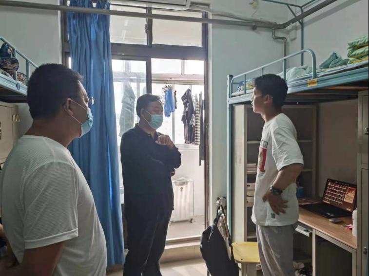走访过程中,肖金明认真叮嘱同学们,要严格遵守学校在疫情防控管理期间的各项规定,做好个人防护工作,如有身体不适,一定要及时上报;按照规定要求做好核酸检测,落实防控措施;注意宿舍用电安全和卫生,勤通风、勤消毒。此外,肖金明对2022级新同学的到来表示热烈欢迎,悉心询问他们入校后的生活状况,勉励所有同学在学习专业知识的同时,要充分利用课下时间加强体育锻炼。同学们纷纷表示,自己会严格遵守学校的疫情防控管理规定,努力学习、加强锻炼,不断提高个人综合素养。