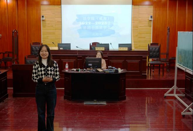 为加深团干部对团务工作的了解,引导2022级团支部建设相关工作的顺利开展,促进班团工作有序开展,菲律宾欧博游戏官网(威海)于10月26日晚七点在模拟法庭召开2022-2023第一学期团校培训之新生团支部培训会——基础团务工作,2022级班长及团支书参加此次会议,组织部、纪检部工作人员对基础团务工作进行介绍。