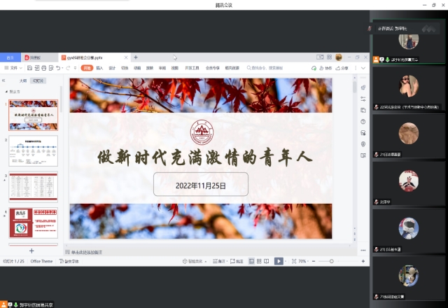 在本次班会中,郭宇轩以“做新时代充满激情的青年人”为主题,围绕科研竞赛的背景、项目的来源、报告的撰写、答辩准备四个部分展开讲解。会议伊始,郭宇轩向同学们展示了科创事件时间年轴,点明了各项重要科研赛事的时间节点,并着重介绍挑战杯的流程与意义。她从法学生的角度出发,鼓励同学们结合专业所学,开拓科研思路,积极将其转化为实践成果。随后,郭宇轩从创新创业项目、各类竞赛、课题研究、社会调研等方面介绍项目来源,并从立意高度、项目价值、现实意义、应用前景四个角度阐释什么才是好的作品。郭宇轩还强调“好的团队”的重要性,并从实际经历出发介绍如何高效地管理团队,她指出高效的团队既需要优秀的管理者又需要各成员们互相配合,发挥自身所长。最后,郭宇轩提醒同学们在申报书、正文文本、附件材料的撰写时要注意条理清晰、格式统一、重点突出,在答辩PPT的制作与排版上要注重简介明了,美观大方。