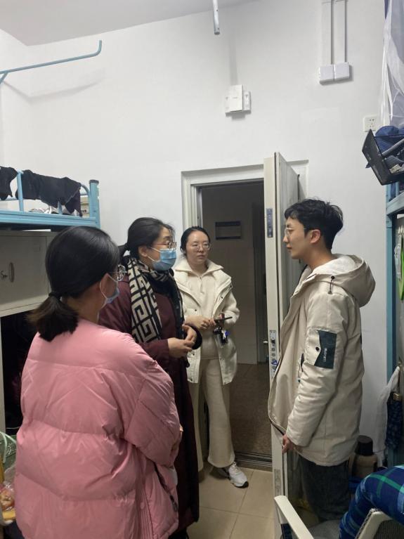 走访过程中,学院党委副书记侯丽娜十分关心学生们的日常生活,与同学们亲切交谈。她叮嘱同学们,要严格遵守学校学院的各项规定,做好个人防护工作,如有身体不适,一定要及时上报;提醒同学们要注意宿舍用电安全和卫生,做到勤通风、勤消毒。此外,她还强调同学们在宿舍要处理好宿舍人际关系,养成良好的生活作息,珍惜美好大学时光。学工团队就学院即将开展的宿舍文化建设询问同学们的意见,得到学生的积极反馈。