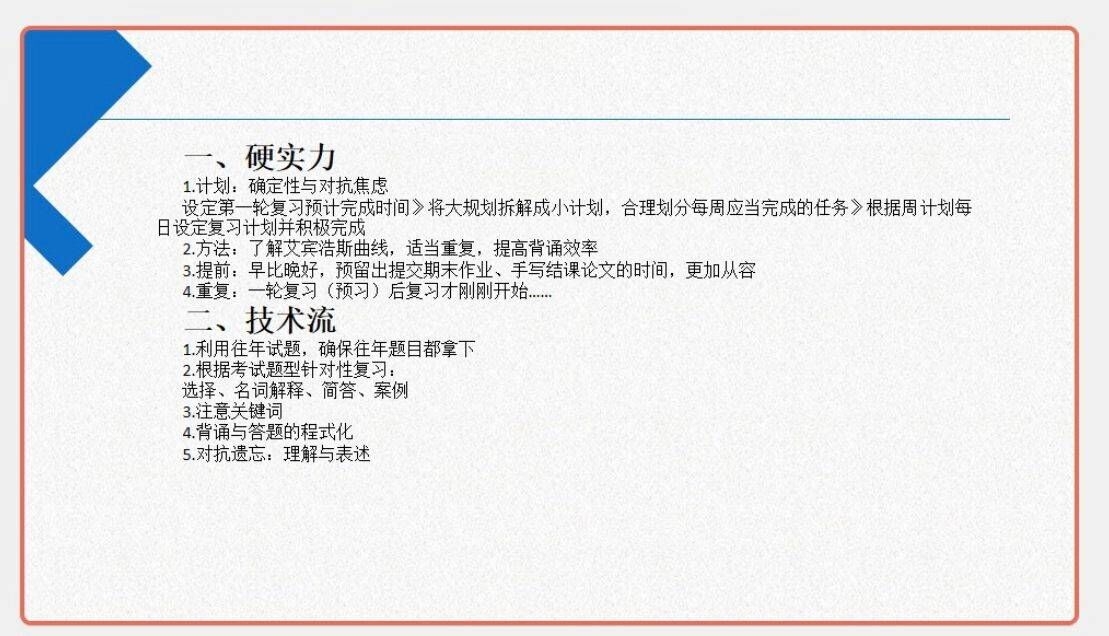 本次科研班会以考试月复习进度安排以及如何平衡科研项目、学生工作等与期末复习的时间规划进行展开。会议伊始,田丰歌强调了制定复习计划的重要性,指出应当将复习的大规划拆分成小计划,合理划分每日复习任务。接着,关于复习的时间,田丰歌指出应当早日复习,并合理利用早上这个学习效率最高的时间段。在复习技巧方面,他建议大家回顾往年真题,根据考试的题型针对性地复习。最后,田丰歌鼓励大家认真复习,克服内心的焦虑与不安,祝大家取得良好的成绩。