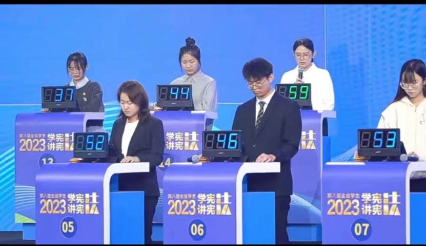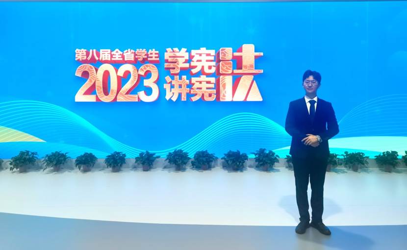 素养竞赛由省内各高校选拔推荐的一百余名选手共同参与。赛题涉猎广泛,跨宪法、民法、行政法、环境法、组织法等多个法域。设题情境贴合生活,在考察选手专业知识功底的同时充分锻炼了选手的法律思维能力。刘馨洁沉着应对,从容作答,经过单选题、多选题、逻辑题、判断题、抢答题等多个环节的激烈角逐,最终以小组总分第二的成绩荣获一等奖。演讲比赛由来自全省116所高校的选手参加决赛。李经典以《点亮宪法之光,普照追梦之路》为题目,以宪法保障公民的劳动权为切口,鼓励广大青年学子在中国式现代化的新征程中勇于追梦,勤于劳动,最终获得高校组三等奖。