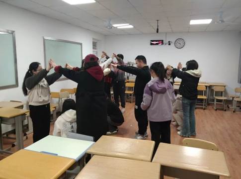 “新生成长训练营”以一系列活动为载体,通过“大风吹”“数字炸弹”等活动突破传统自我介绍,以新颖多变、妙趣横生的游戏互动,让学生加深对彼此的了解,改善班级内部人际关系,提升班级凝聚力。“松鼠与大树”等活动调动了学生的积极情绪,在主持人随机转换的口令下,学生手搭手共筑“大树”守护“松鼠”,欢声笑语环绕于四周的同时,团队的合作能力与团结精神也得到锻炼。通过“未来寄语”活动,学生共抒心声,展望未来,其团队合作精神与集体荣誉感得到培养,为班级发展注入凝聚力量。