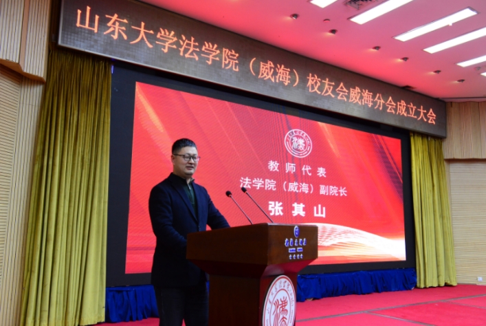 侯丽娜和张其山代表学院对校友会威海分会成立表示祝贺,表示学院高度重视校友工作,着力将校友会打造成为团结和凝聚广大校友的交流平台,欢迎各位校友常会母校,共叙友情,共话发展。