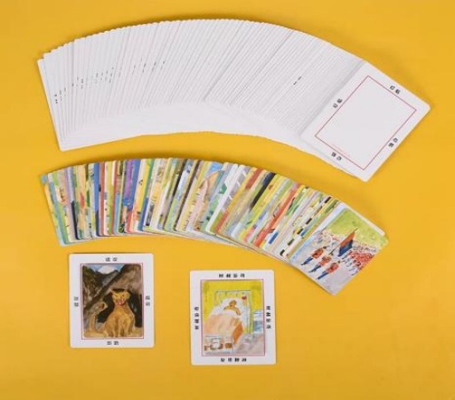 主持人向学生介绍欧卡牌的游戏原理及游戏规则,简要阐明欧卡牌在心理健康方面的作用。学生首先通过欧卡牌的基础使用熟悉卡牌并进行热身游戏,抽取一张图画卡和一张引导卡,基于图画卡的内容分享个人的理解,并将图画卡和引导卡组合后,谈论对组合卡片内容的理解。学生利用欧卡牌进行了几轮“故事接龙”游戏,每人抽取5张图画卡,通过自由排列卡片图画,调整卡片顺序,并借助图画讲述一个简短故事,以此展现自己的内心活动,现场氛围活跃。丰富多彩的图卡不仅激发了学生的表达欲,也让其想象力得以充分释放。在一次次的表达与倾听中,学生通过自我探索,了解并理解自身情感和心理状况,从而进行有效的情感释放。
