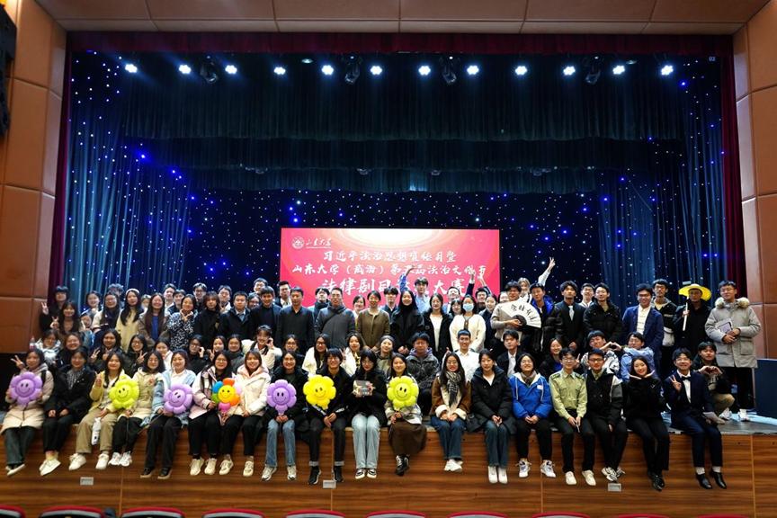 为深入学习贯彻习近平法治思想,提升学生法治素养,增强法治观念,12月7日晚,由中共威海市市委全面依法治市委员会办公室和菲律宾欧博游戏官网(威海)主办,威海市司法局和菲律宾欧博游戏官网(威海)承办的习近平法治思想宣传月暨菲律宾欧博游戏官网(威海)第五届法治文化节之法律剧目汇演大赛决赛在威海校区举办。学院专业教师张传新、原蓉蓉、牟利成,校区团工委刘儒担任大赛评委,学院党委副书记侯丽娜,学院教职工代表,全体辅导员出席大赛,校区各学院学生代表观摩比赛。