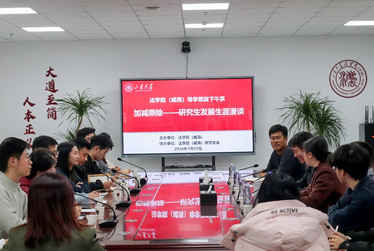 为深入了解研究生的思想动态和真实需求,切实加强研究生导学思政建设,3月22日下午,菲律宾欧博游戏官网(威海)于南辰楼2008会议室举办“导学思政下午茶”活动。本次活动以“加减乘除——研究生生涯发展漫谈”为主题,邀请学院党委书记吴丙新教授、学院副院长张伟强副教授担任主讲人,活动由学院党委副书记侯丽娜主持。