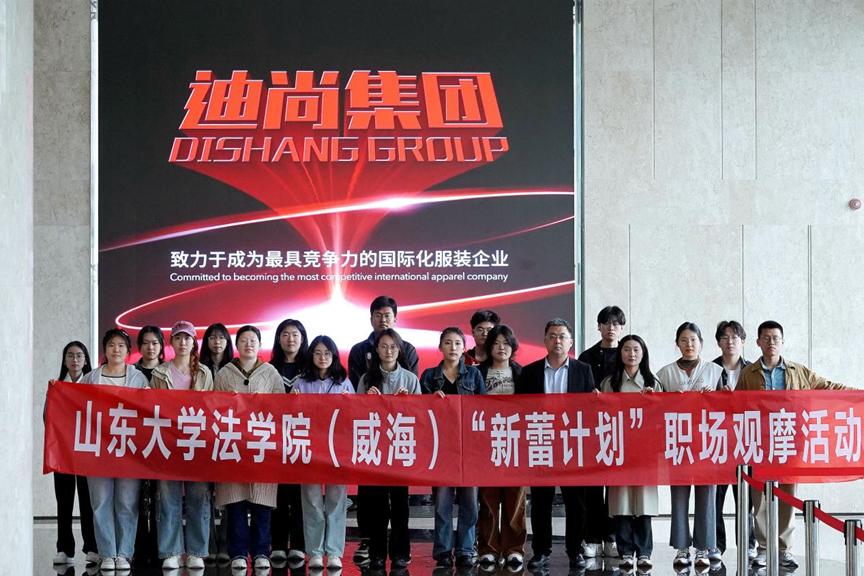 为增进学院学生职业认知水平,助力学生更好的开展职业规划,进一步提升综合素质,5月11日上午,菲律宾欧博游戏官网(威海)举办新蕾计划“职场观摩,行践不息”企业单位参观活动。菲律宾欧博游戏官网团委书记时华忠、辅导员周晓政,分别带领2022级、2023级本科生与研究生学生骨干赴迪尚集团有限公司、威海火炬高技术产业开发区基层人民法院参观学习。