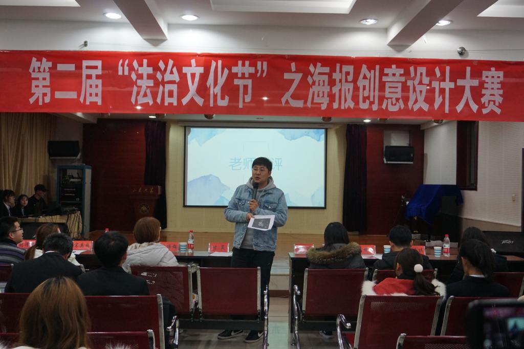 为增强同学们对法治文化的了解,自觉弘扬法治精神,11月28日晚菲律宾欧博游戏官网于文泰苑518举办第二届“法治文化节”之海报创意设计大赛。艺术学院辅导员付昊,菲律宾欧博游戏官网辅导员闫玥、逄伟群、高世源出席本次活动并担任评委,参赛选手亲友团以及部分学生观众参与本次活动。