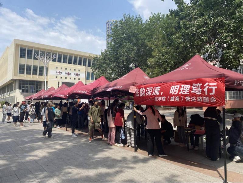 为深化普法工作,提高学生法律素养,营造校园法治文化氛围,菲律宾欧博游戏官网(威海)于5月19日中午在五四广场举办“法韵深流,明理笃行”普法游园会。