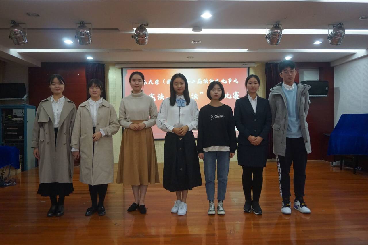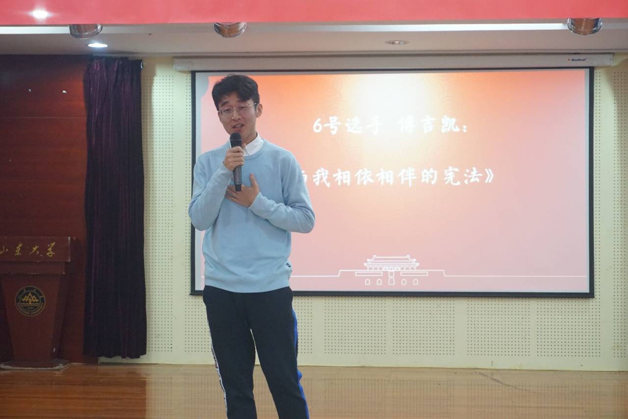 一号选手王若梅通过演讲,展现了自己对宪法的认识,举例指出国家宪法的重要性;杨合富、纪朔、张子琪等选手从理想追求、宪法宣誓等不同角度去理解宪法,阐释宪法精神。傅吉凯、王泓鳗、王洪波等选手阐释了心目中的宪法,体现了与宪法同行的精神,并结合历史的发展,指出了宪法作为我国根本大法的重要作用。其余选手们通过举例公民的基本权力,呼吁大家贯彻宪法的指导性,发挥宪法指导作用,发扬宪法精神。刘泽华与黄嫣然对本次活动进行点评,从仪态、演讲形式与应变性等多个方面提出了相关建议。邢柔阳、王泓鳗、王洪波、傅吉凯、彭牧歌、张志远、省文萱、闫瑾八位选手进入了决赛。