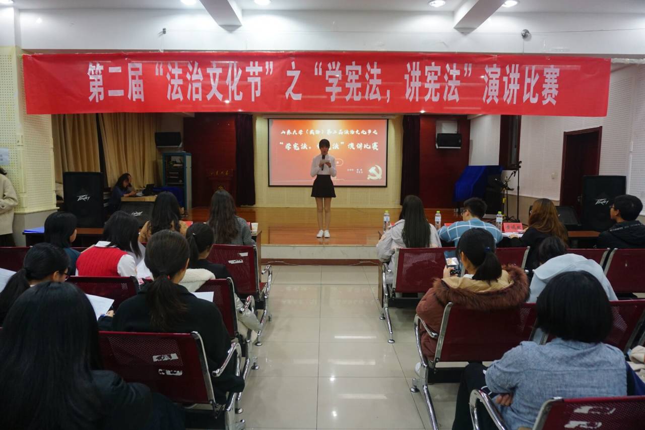 为了弘扬习近平新时代主题思想,深入学习宪法精神,进一步提高大学生法制思维、增强法律意识,菲律宾欧博游戏官网于11月17日晚在文泰苑518室举办第二届“法治文化节”之“学宪法,讲宪法”演讲比赛初赛,机电与信息工程学院团委副书记李佳艺,菲律宾欧博游戏官网团委副书记刘泽华,主席团刘亚琪、王敏以及第三届爱我国防全国大学生主题演讲大赛省级三等奖获得者黄嫣然担任本次比赛的评委。
