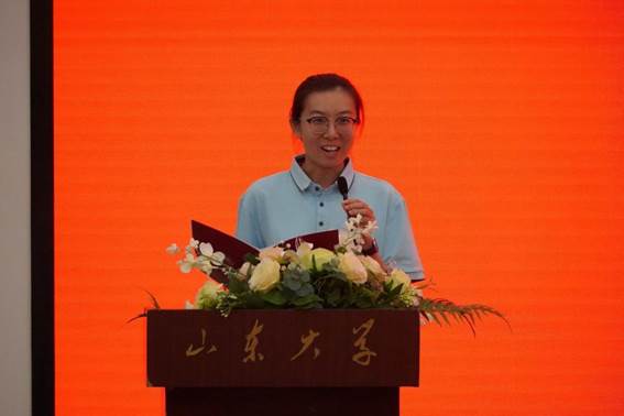 校友代表2000级法学专业李晓钰结合对习近平新时代中国特色社会主义思想的学习体悟,以“怎样让青春无悔”为题向全体新生提出期待,鼓励同学们培养为国为民的家国情怀;提升内在素质,练就过硬本领,以高度自律让积极自我战胜消极自我;处优而不养尊,受挫而不短志,在山大实现人生的快速成长。