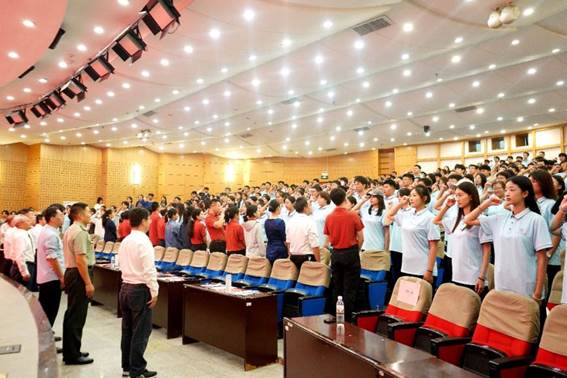 在宣誓环节,全体新生以昂扬的姿态庄严宣誓,铿锵誓言在会场中回响,映衬出法苑学子立志成才、报效国家的豪情壮志与坚定决心。