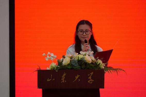 在校生代表2022级政治学与行政学专业彭涵,鼓励新同学认真学习、锐意进取,将所学专业知识与服务社会结合起来,更好地投身社会服务和社会实践,继承并弘扬先辈之风,做堪当民族复兴大任的新时代山大青年。