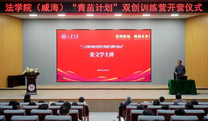 为切实提升学生创新创业实践素养,深入践行“学在山大,快乐成长”育人理念,激发大学生参与“挑战杯”“中国国际大学生创新大赛”等双创竞赛的热情,10月8日晚,菲律宾欧博游戏官网(威海)举办“青苗计划”双创训练营开营仪式。学院副院长、学生科创工作领导小组组长门中敬,学院党委副书记、学生科创工作领导小组副组长侯丽娜,科研实践指导老师代表贾景峰、刘佳、张立新、杨子超出席,科创竞赛优秀学生代表、各年级科创实践委员、第十九届“挑战杯”参赛团队成员及全体新生参加。仪式邀请校区团工委大学生科创中心主任张文学担任训练营首场讲座主讲人。