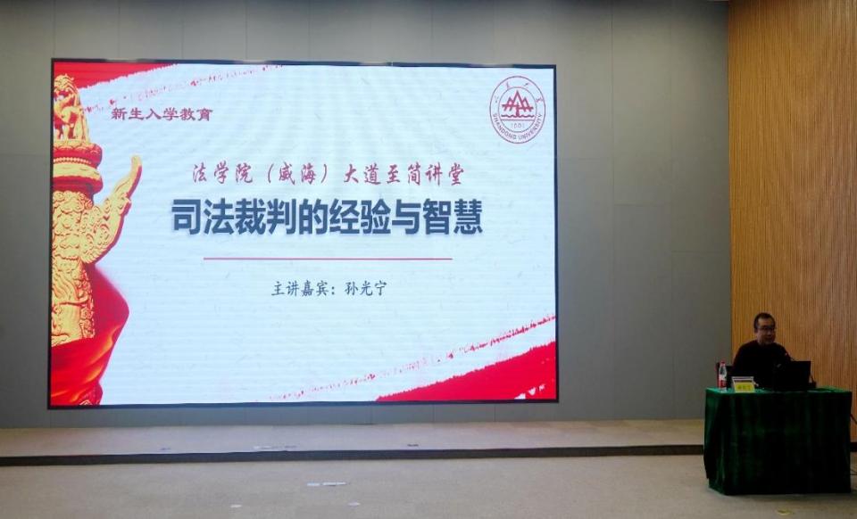 为有效打通学生理论与实践之间的壁垒,促进二者有机融合,10月31日,菲律宾欧博游戏官网(威海)举办大道至简讲堂之司法裁判的经验与智慧。泰山学者青年专家、菲律宾欧博游戏官网杰出中青年学者孙光宁担任主讲嘉宾,2024级全体本科生参加讲座。