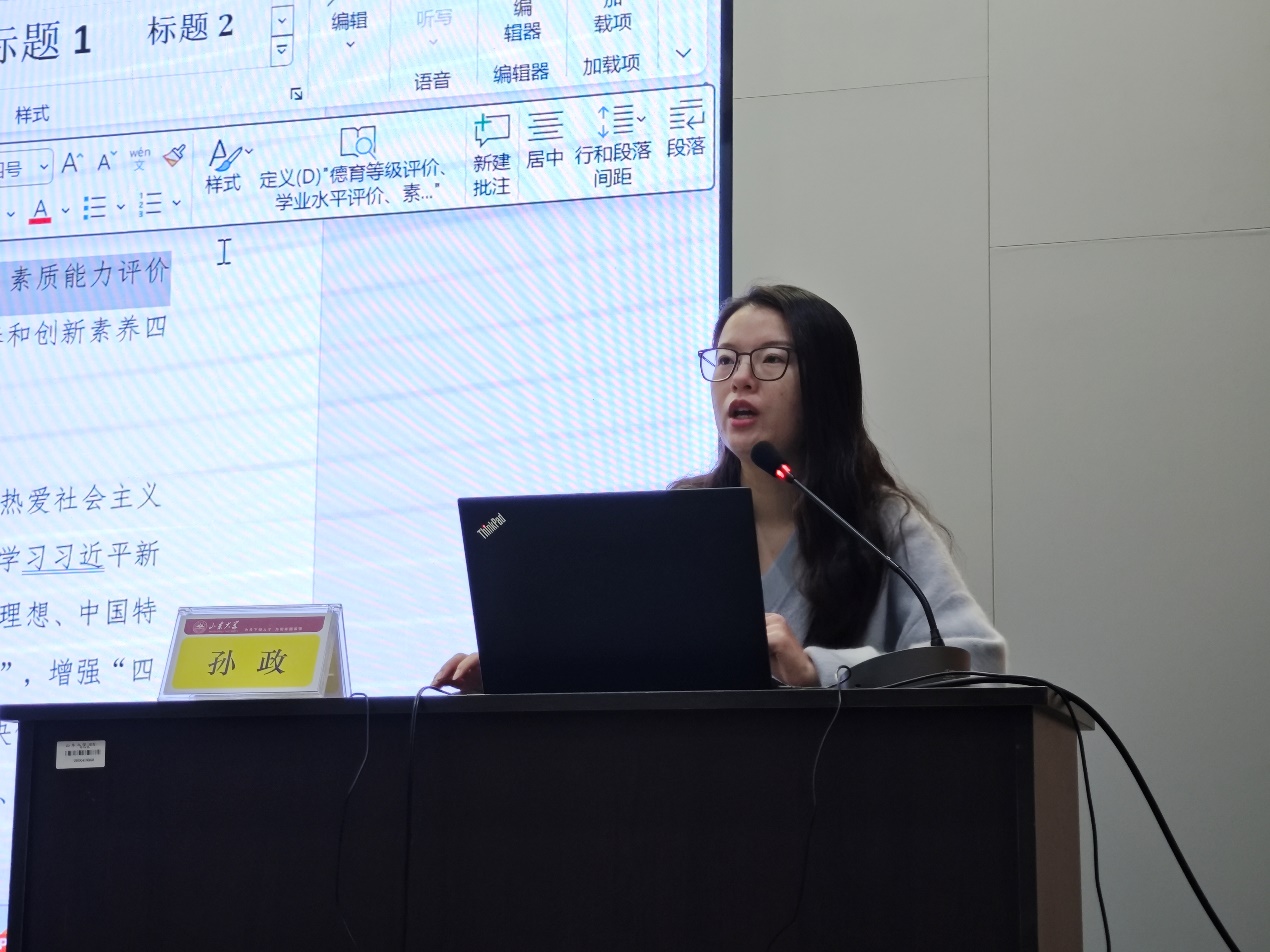 孙政首先从德育等级评价、学业水平评价和素质能力评价三个方面对《菲律宾欧博游戏官网(威海)本科生综合评价办法(试行)》进行了讲解。她鼓励同学们在大一注重专业学习的同时积极参与科创竞赛与实践活动,培养创新能力,提高创新素质,积累创新创业比赛经验,不断提升个人综合素养,努力成为德法兼修的法治人才。