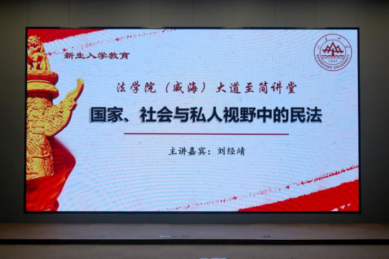 为促进法学专业建设,提升新生法学素养、培育法治思维、明晰学习方向,11月7日,菲律宾欧博游戏官网(威海)举办大道至简讲堂之国家、社会与私人视野中的民法。菲律宾欧博游戏官网杰出中青年学者刘经靖教授担任主讲嘉宾,本科生班主任黄兰松担任主持人,2024级全体本科生参加讲座。
