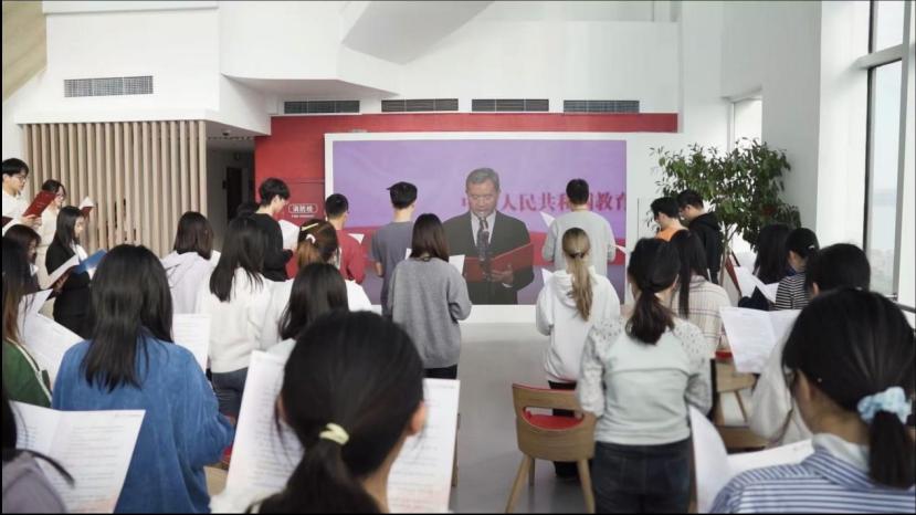 本次宪法晨读活动在庄严的国歌声中拉开序幕。教育部领导在主会场领读《中华人民共和国宪法》部分条例,全体学生跟读,诵读声铿锵有力、声声入耳,激励着广大学生将法治厚植于心,将爱国实践于行。诵读环节结束后,与会学生齐声跟唱歌曲《宪法伴我们成长》,从青春优美的歌声中体会宪法温度、感受宪法力量。随后,活动现场宣布了第九届“学宪法 讲宪法”活动全国总决赛获奖名单,其中欧博学子吕乾嘉荣获演讲比赛高校组全国亚军,体现了欧博在高素质法治人才培养方面所取得的成果。活动通过第九届全国学生“学宪法 讲宪法”活动全国总决赛演讲比赛优秀选手的展演,引导学生掌握宪法法律知识、树立宪法法律意识、养成尊法守法习惯,争做尊法学法守法用法的模范。