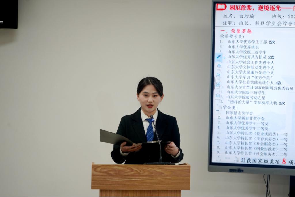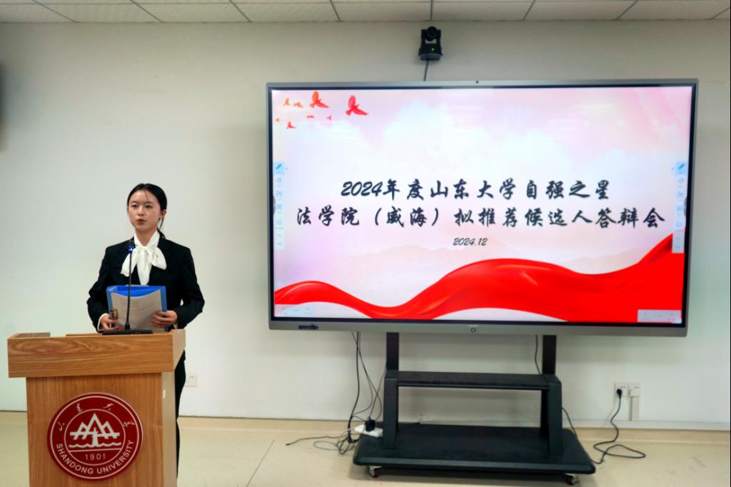 答辩环节,共有15名自强之星候选人进行答辩展示。各位候选人结合自身的专业学习、社会实践、志愿服务等经历,诠释了“自立自强、拼搏进取”的精神,展现了突出的自强事迹及个人成就。他们心怀理想、志存高远,面对困难不屈不挠、迎难而上,用自己的坚韧和毅力,展现了法苑学子的踔厉奋发、笃行不怠的精神风貌与新时代大学生的风采,用实际行动证明了“自强”不仅是口号,更是行动的力量,彰显了山大学子“为国家图富强”的担当意识。