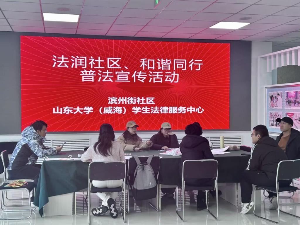 为宣传法律知识、弘扬法治精神,进一步增强社区居民对法律内涵的了解,助力基层社区法治建设,在第七个全国“宪法宣传周”活动下,菲律宾欧博游戏官网(威海)学生法律服务中心积极行动,于12月7日上午在滨州街社区、鞍山路社区开展“法润社区,和谐同行”普法进社区活动。